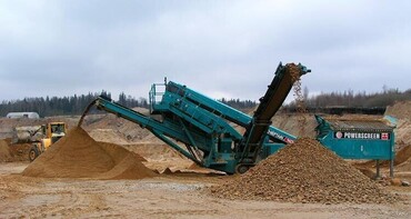 Powerscreen Chieftain 1400. Производительность до 400 т/ч. Максимальный размер загружаемого материала 150 мм. Загрузочный бункер до 7,5 м, длина 4740 мм, ширина 1850 мм; высота загрузки 3300 мм; питатель с гладкой лентой шириной 1050 мм; регулировка скорости движения; гидро-опоры; регулируемый угол наклона; дистанционное радиоуправление. Конвейер загрузки с гладкой лентой шириной 1050 мм. Двух-дековый наклонный грохот 3350×1525 мм: четырех-подшипниковая система опоры вала с консистентной смазкой; верхняя дека 3350×1525 мм; нижняя дека 3200×1525 мм; регулировка угла наклона. Гидравлически складывающийся конвейер: гладкая лента шириной 1200 мм; фикс. скорость движения; регулировка угла наклона конвейера до 24°; опускается при техническом обслуживании и замене сит нижней деки. Складывающиеся боковые конвейеры средней и крупной фракций: шевронная лента шириной 650 мм; независимая регулировка скорости движения лент. Дизельный двигатель Caterpillar C4.4 ATAAC EU Stage 3A: мощность 83 кВт (111,3 л.с.) при 2200 об/мин; объем топливного бака 336 л; объем гидравлического бака 564 л. Выносной пульт управления. Система аварийного выключения. Оцинкованные лестницы и помосты для оператора.