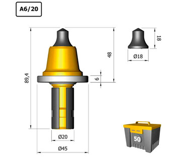 Резцы А6/20 для Wirtgen, Bitelli, Caterpillar, Roadtec, Terex, Bobcat, Dynapac, Weber, Амкодор, Simex и т.д.